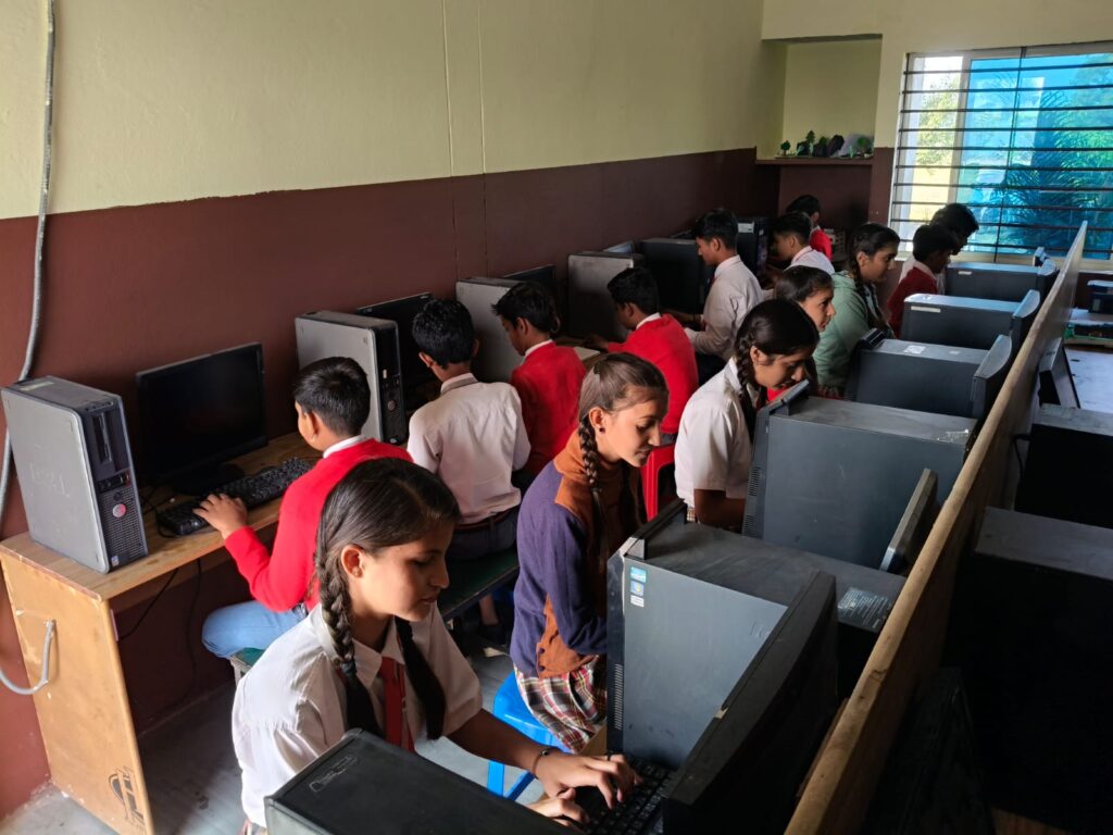 Students are taught basic computer operations, MS Office, internet usage, and digital safety. As they move to higher classes, they also learn about coding, presentations, and creative design work.